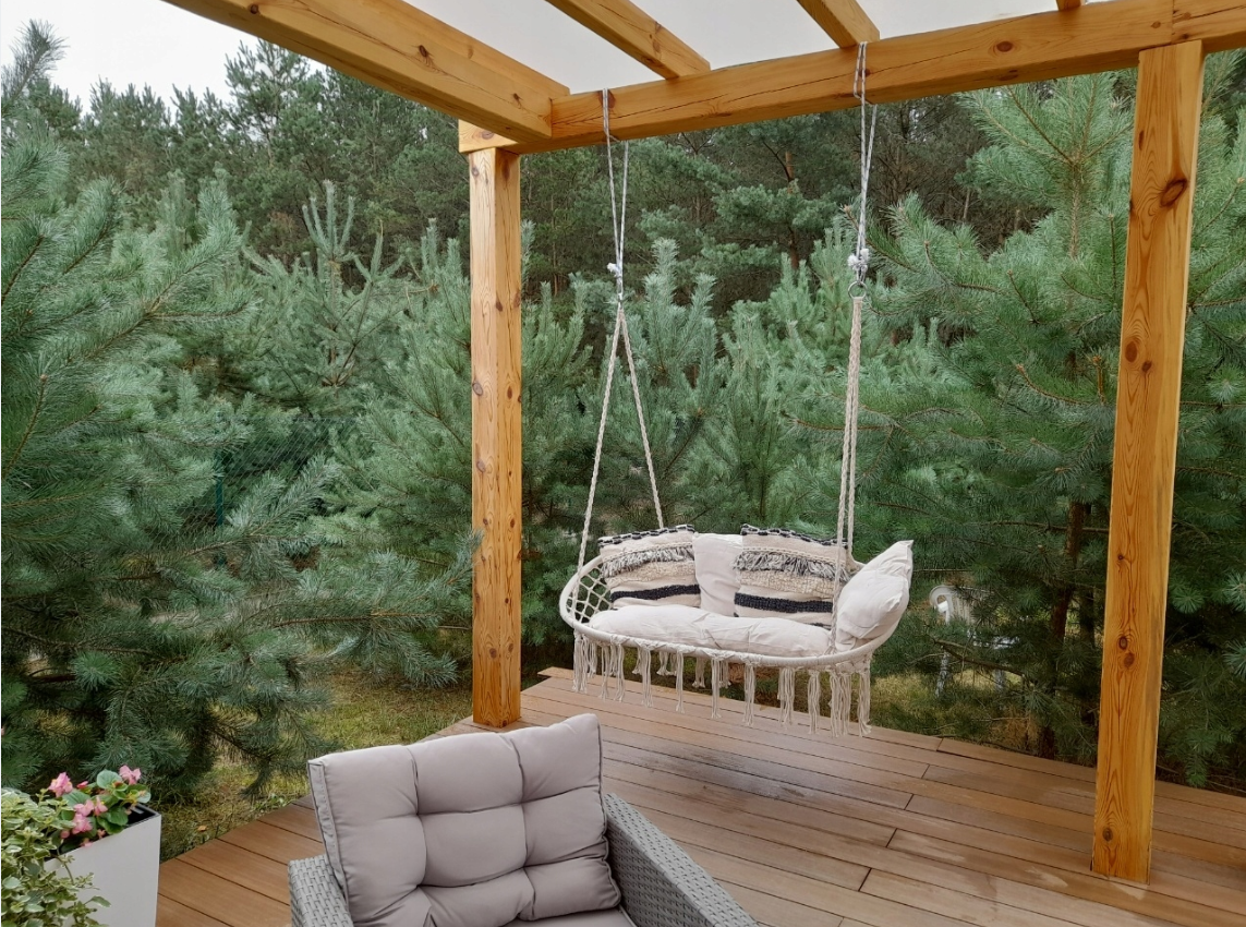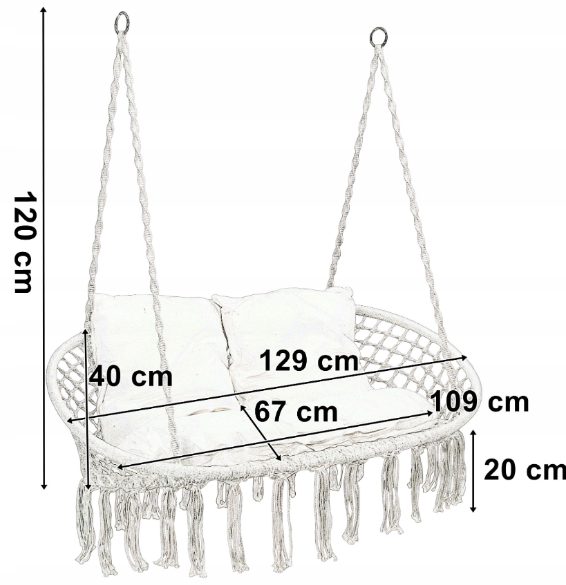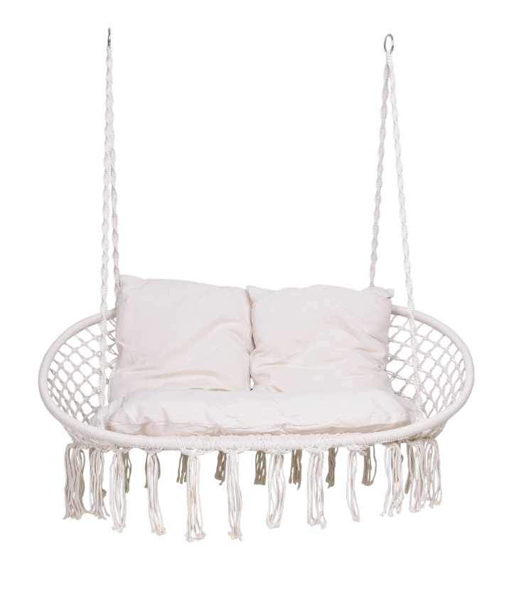 Huśtawka Ogrodowa Biała Duża Bocianie Gniazdo Fotel Ławka BOHO Dwuosobowy Hamak