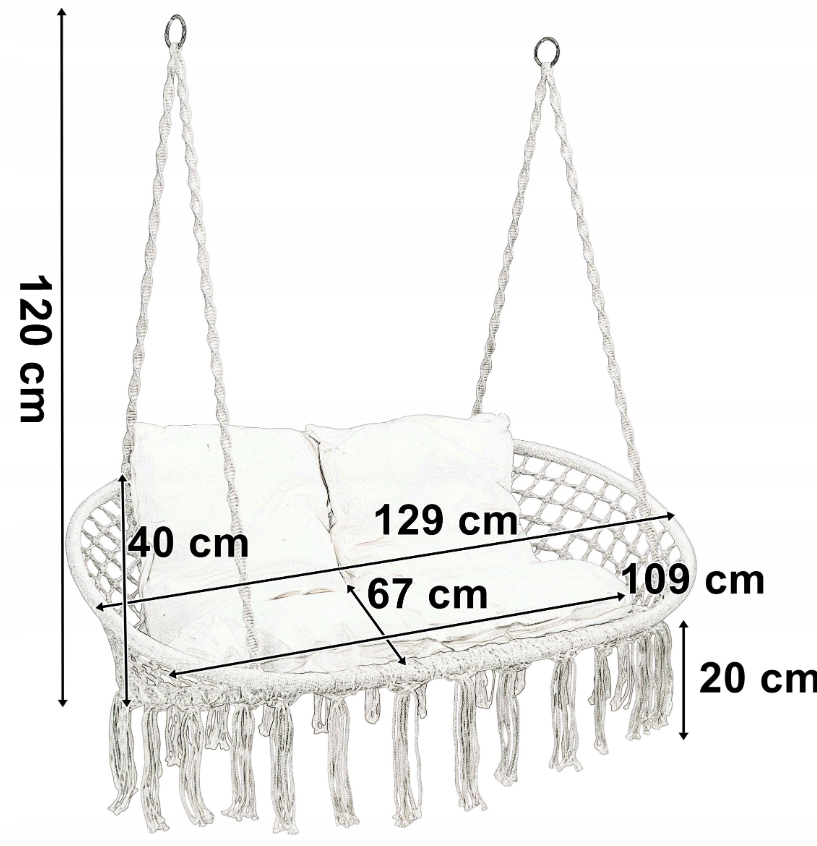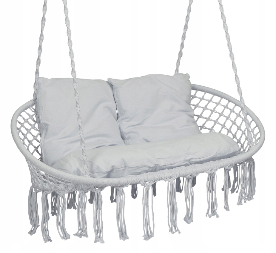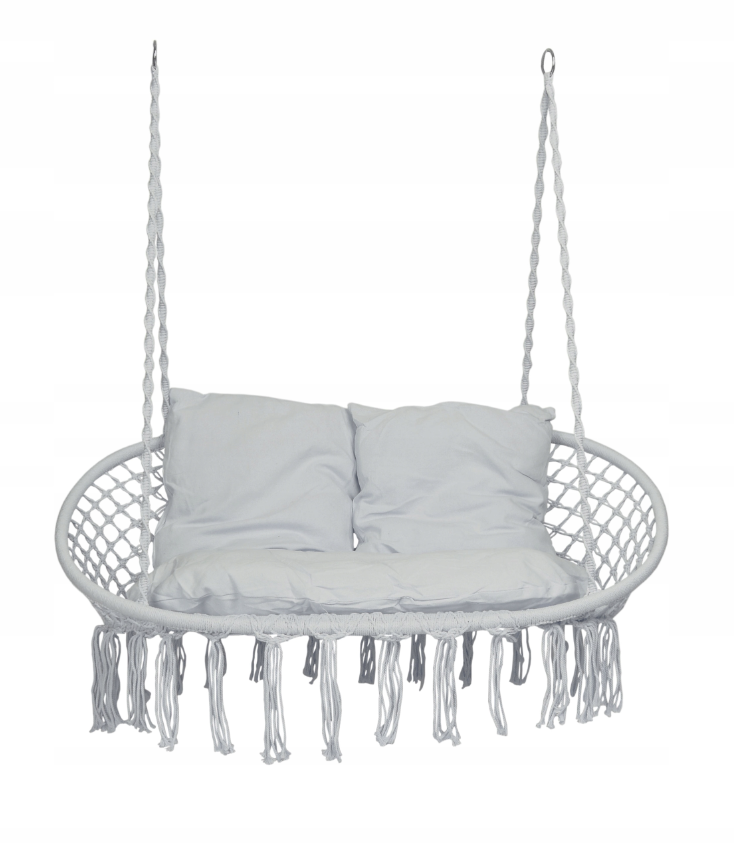 Huśtawka Ogrodowa Szara Duża Bocianie Gniazdo Fotel Ławka BOHO Dwuosobowy Hamak