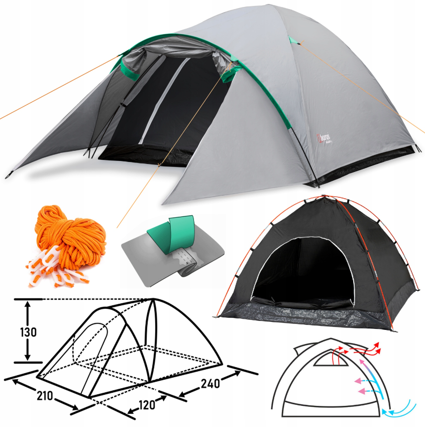Namiot Turystyczny Kempingowy na Biwak Duży 4 Osobowy